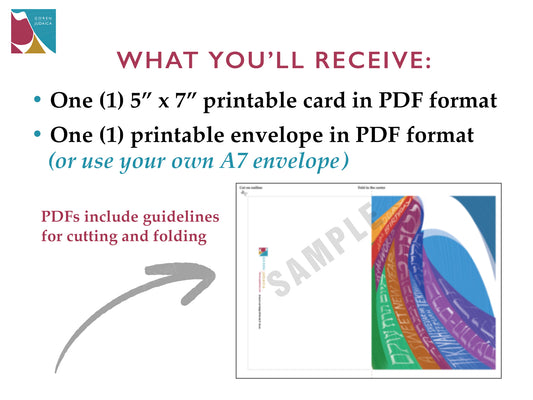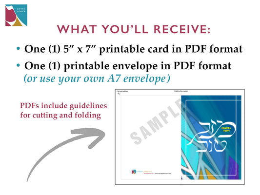 Printable Mazel Tov card, multicolor, Instant Download PDF, 5 x 7 card with printable envelope, digital download,