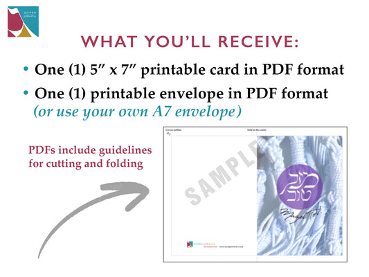 Printable Mazel Tov card for Bar/Bat/B-Mitzvah, purple, Instant Download PDF, 5 x 7 card with printable envelope, digital download,