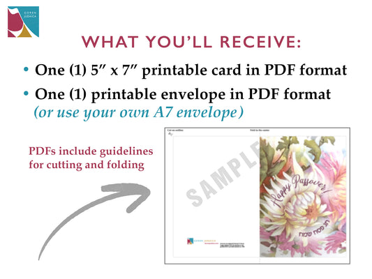 Printable Passover card, flowers, Instant Download PDF, 5 x 7 card with printable envelope, digital download,