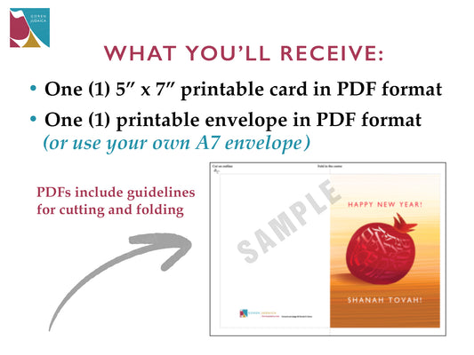 Printable Rosh Hashanah card, pomegranate (rimon), Instant Download PDF, 5 x 7 card with printable envelope, digital download,